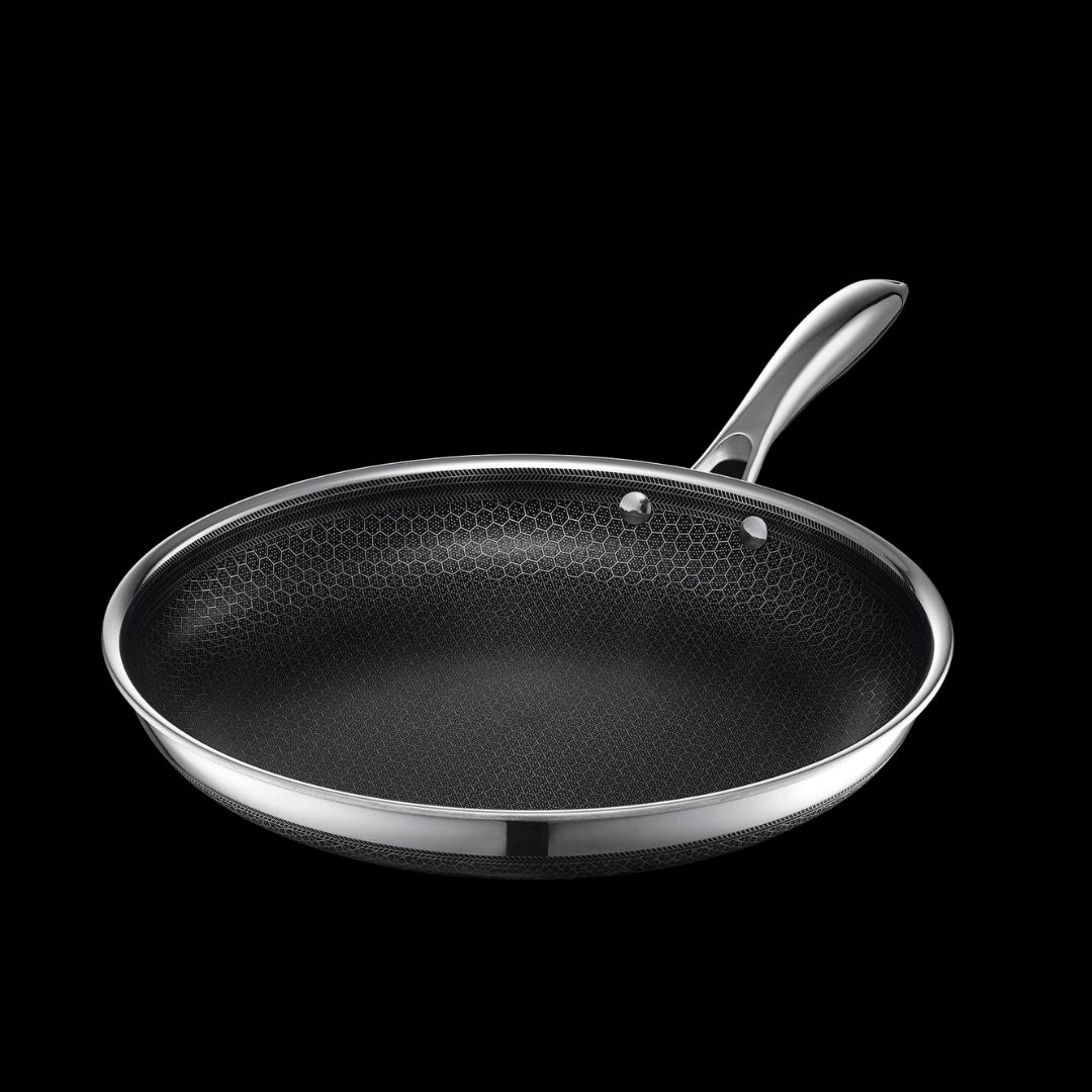 We’re not just about looks—but wow, those hexagons do look sharp. Laser-etched stainless steel forms a network of micro-ridges that boost your searing power like nothing else. These raised steel peaks mean crispy salmon skin, golden-brown crusts, and caramelized perfection, every time.